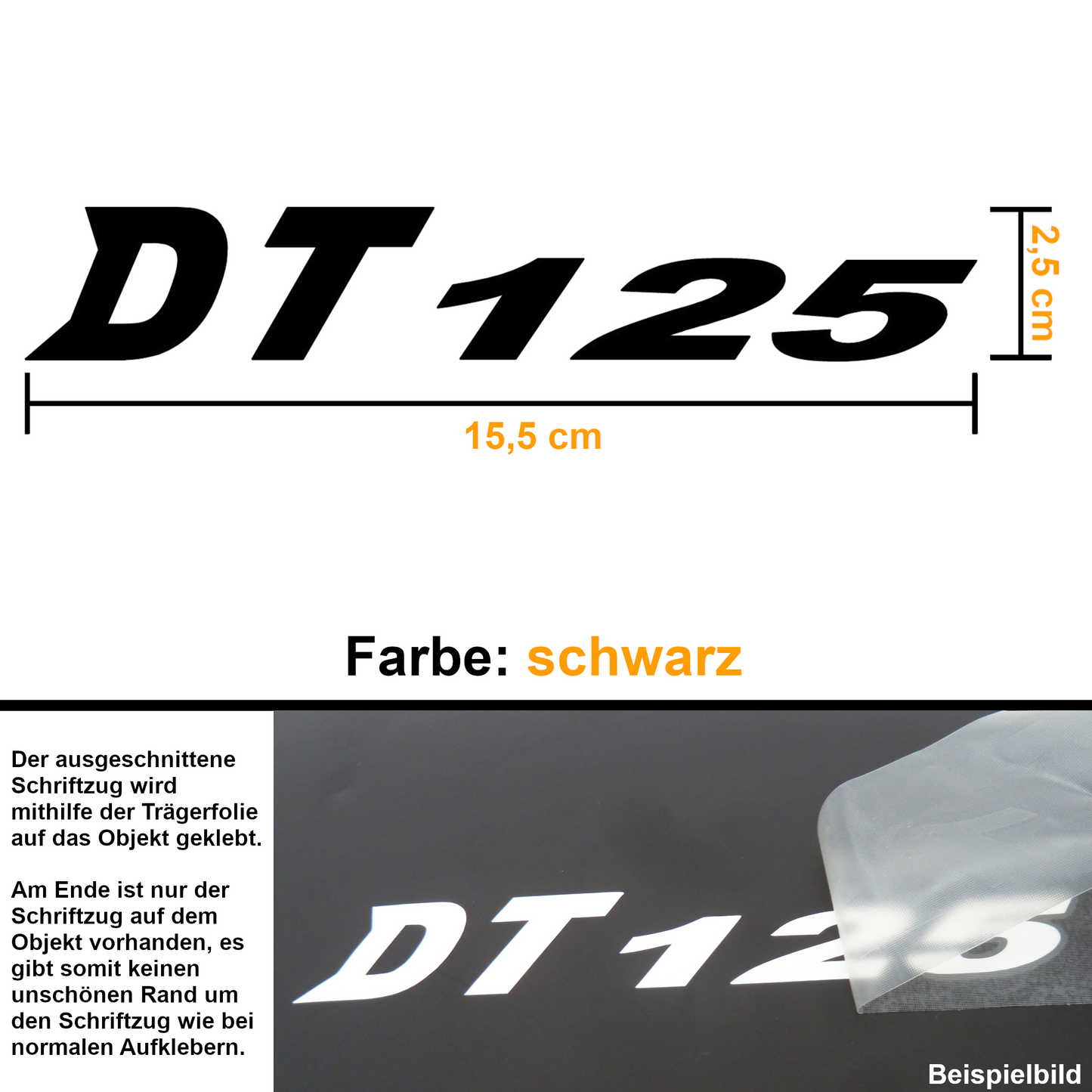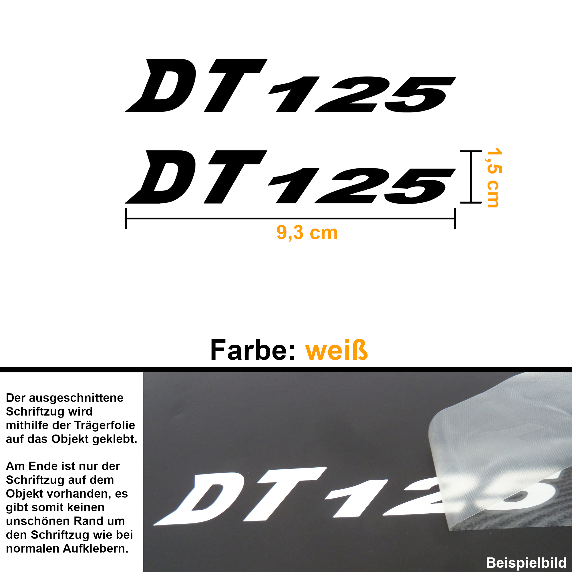 Schriftzug "DT 125" (Design Nr. 2) zum aufkleben.